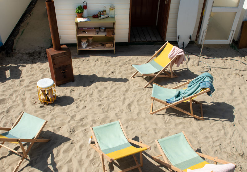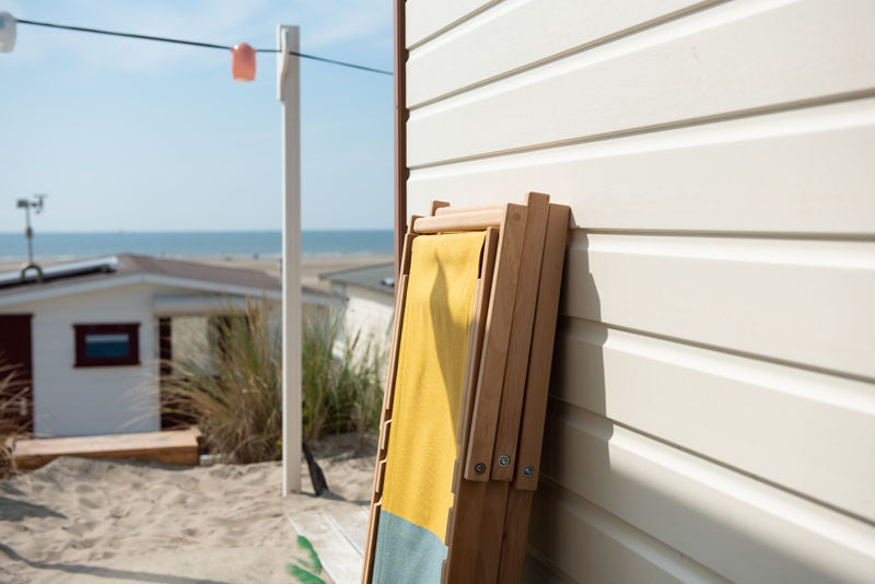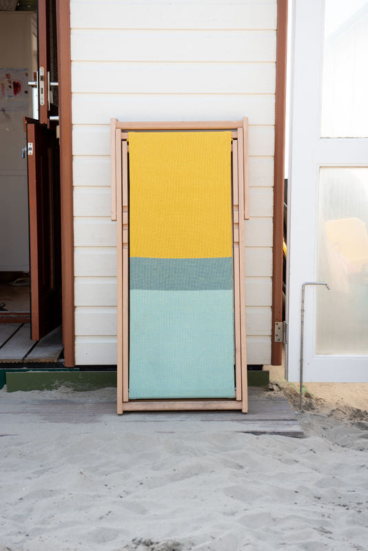 Designer Erik Stehmann gives the classic beach chair a modern update. The fresh colours of the fabric were created in a collaboration with design studio Raw Colour and are inspired by the horizon: the sunset and sunrise.
