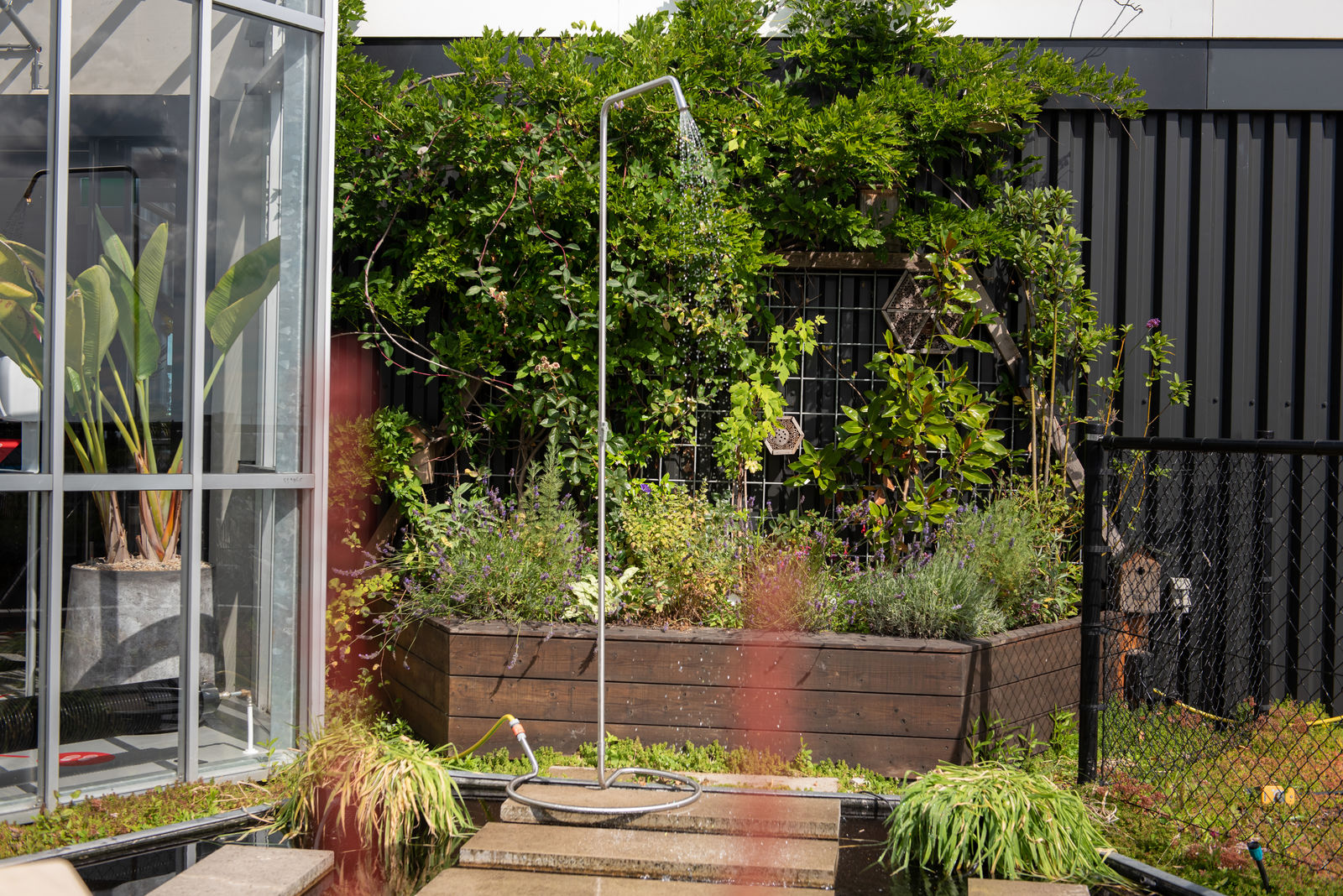 The Serpentine Shower from Weltevree is a garden shower completely made of stainless steel. The feather light construction makes it easy to move the Serpentine around, so you can take a shower wherever you want in the garden.
